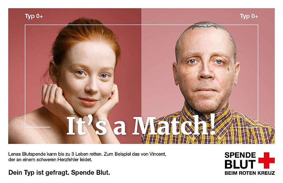 Seit einigen Monaten ist die neue Aufmerksamkeitskampagne des DRK-Blutspendedienstes Nord-Ost unter www.blutspende.de/itsamatch online. Im Rahmen der Kampagne werden Bilder von jeweils zwei Menschen gezeigt, die auf den ersten Blick nicht unterschiedlicher sein könnten, die jedoch eine Gemeinsamkeit haben: ihre Blutgruppe. Mit derselben Blutgruppe kann ein Mensch für einen anderen zum Lebensretter werden.